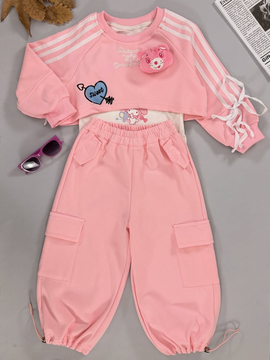 سایز 110: پهنا 40 بلندی کراپ 28 قد آستین 44 قد شلوار 60